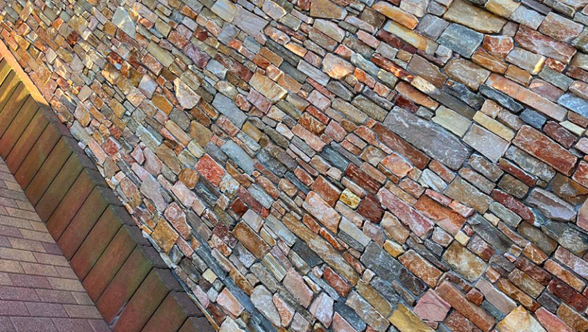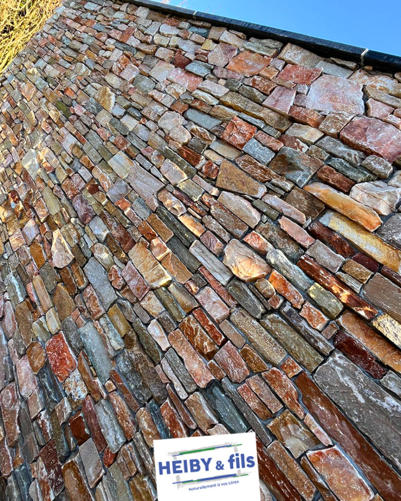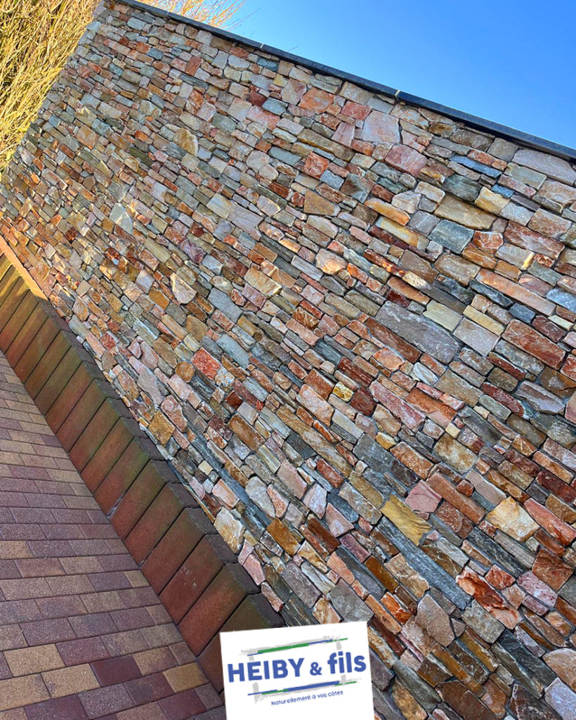 Mur en agglo coffrant, habillé de plaquettes en pierre naturelle pour un rendu authentique et plein de caractère 👌 La finition est sublimée par une couvertine en granit Cosmos, apportant une touche élégante et durable dans le temps 💎 #Heiby #Alsace #Paysagiste #Nature #EspacesVerts #Plantes #Décoration