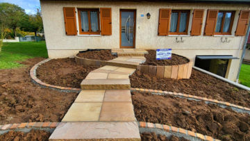 🌿Un beau chantier complet terminé à Schleithal 😍🌞 avec un pavage Heinrich & Bock, un escalier en acier...
