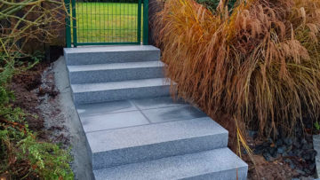 🎋🪨🌾 À La Wantzenau, rénovation d’un escalier de jardin ✨ Pose de marches en granit gris clair et dalles...