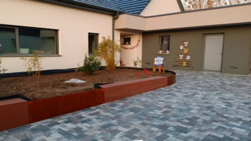 🎒🚌 Chantier en cours à l’école de Neewiller-près-Lauterbourg 🏫 Aménagement de la cour avec végétalisation,...