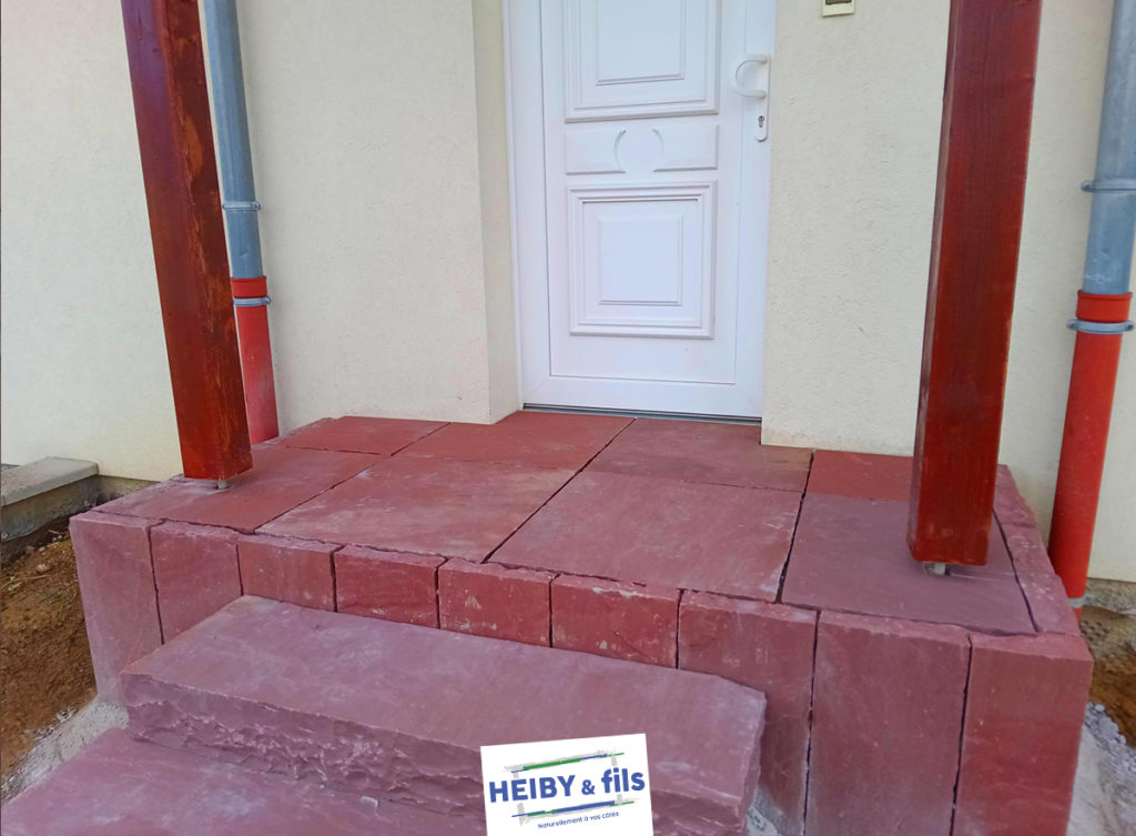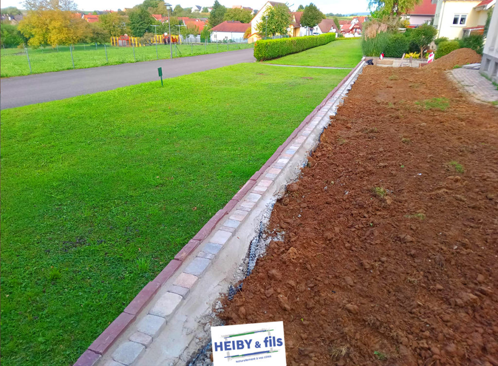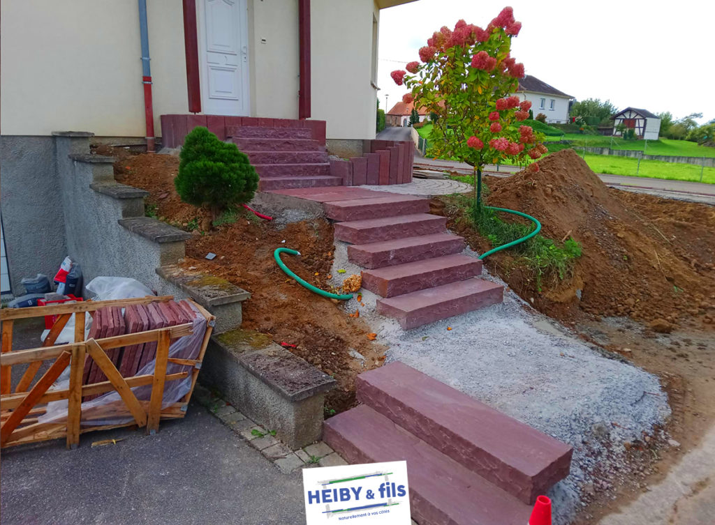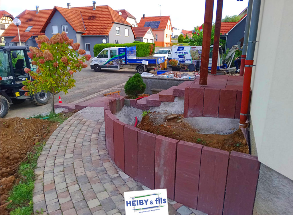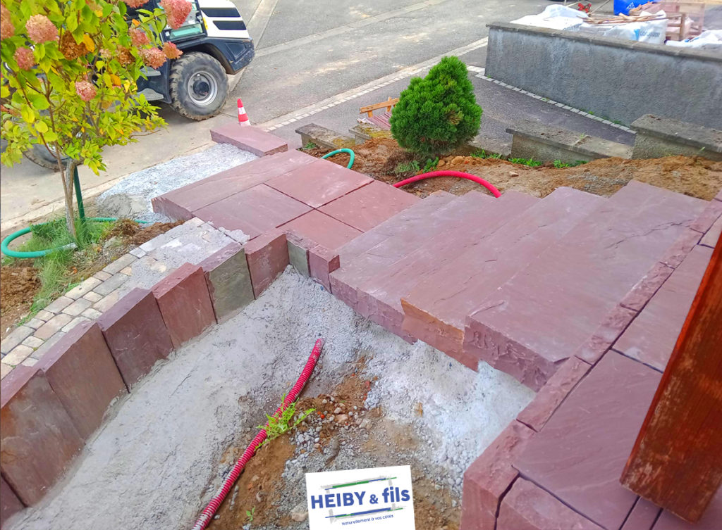 Pose d’escalier en marches bloc, palissades, dalles en grès, bordures et pavés ! Un projet technique et esthétique, réalisé avec soin par notre équipe 😊 #Heiby #Alsace #Paysagiste #Nature #EspacesVerts #Plantes #Décoration