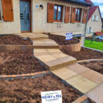 Un chantier qui transforme complètement l’entrée de cette maison grâce à un bel aménagement en grès des Indes 🇮🇳🪨 Escalier, dalles, palissades, marches et pavés ont été soigneusement posés pour offrir un rendu naturel, une entrée chaleureuse et durable. 🔥😍 ☘️🌳 #Heiby #Alsace #Paysagiste #Nature #EspacesVerts #Plantes #Décoration